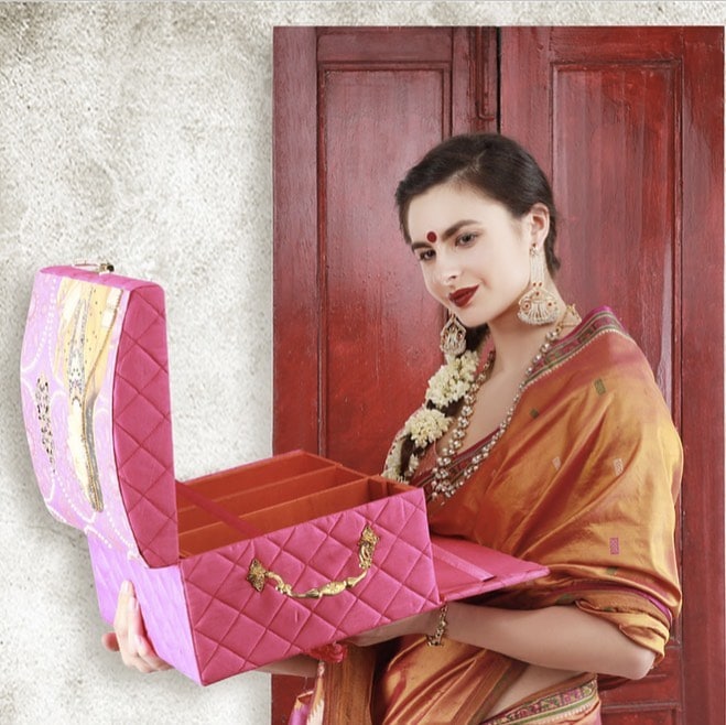 For those who are fashion freak and give too much attention to their fashion quotient will love this as a Diwali gift. It is available in many sizes: be it to carry as an accessory box for small functions and events or a big trunk to store your heavy and festive lehengas.